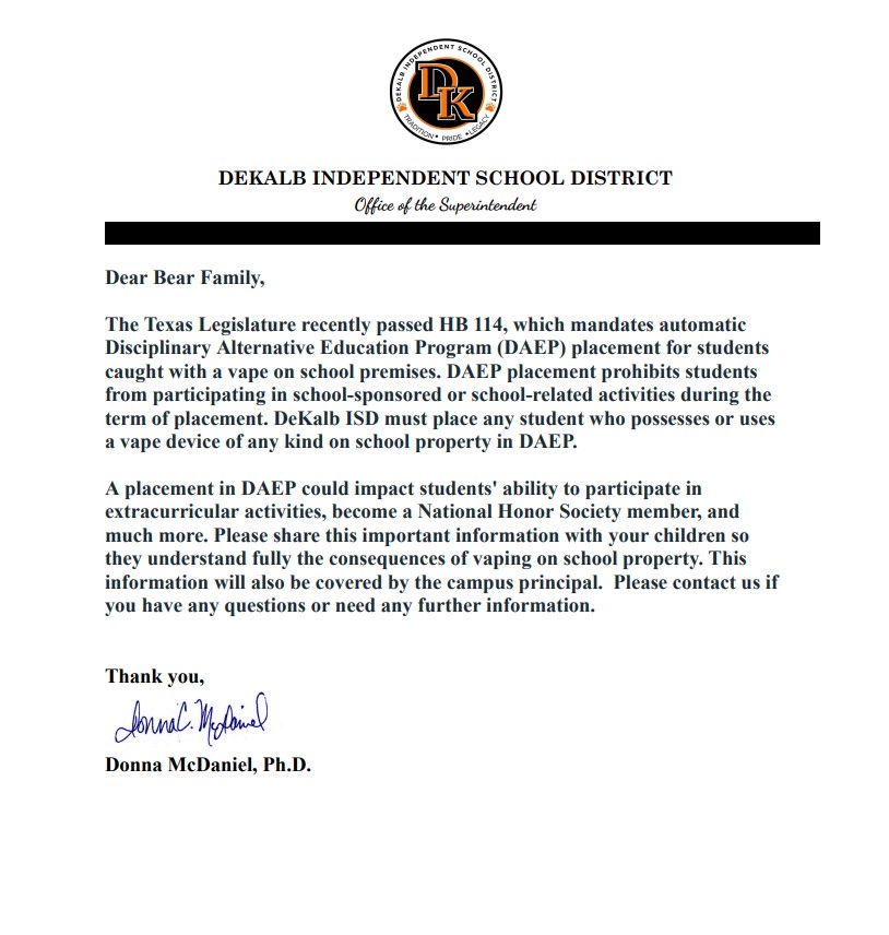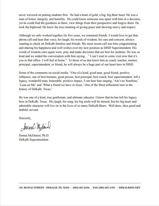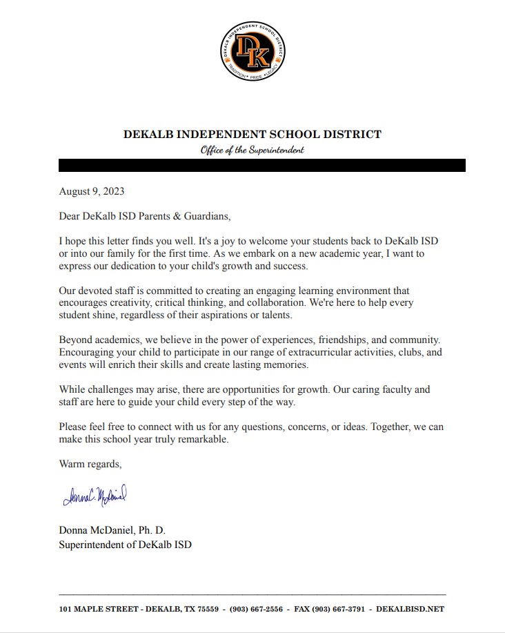 DeKalb ISD Superintendent of Schools - Dr. Donna McDaniel, Ph.D.